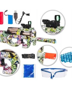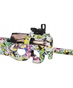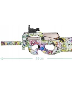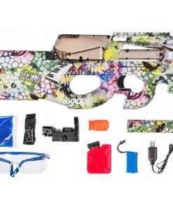 P90 gelinis ginklas (blasteris) – tai modernus automatinis elektrinis ginklas. Apšviestas taikiklis leis lengvai pataikyti į taikinius. Ginklą lengva transportuoti, nes jis susideda iš skirtingų dalių. Blasterio viduje yra lengvai išimamas ir įkraunamas akumuliatorius. Ginklas užtaisomas geliniais rutuliukais. Maksimalus šaudymo nuotolis – 20 metrų. Kartu su šiuo modeliu dovanojame 5000 vnt. biologiškai skaidžių šovinių .